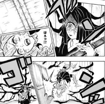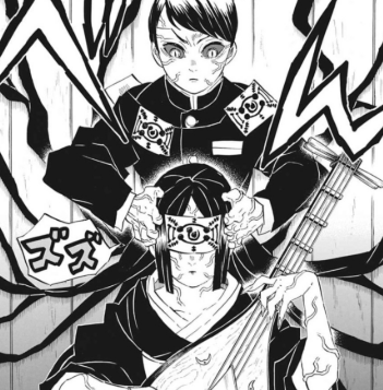 愈史郎が血鬼術「紙眼(しがん)」を使って鳴女に接近し、呪いの札を頭部に貼ることに成功し、鳴女の意識を操り、無惨や柱たちに幻覚・偽情報を見せるなど、無限城のコントロールを奪います。